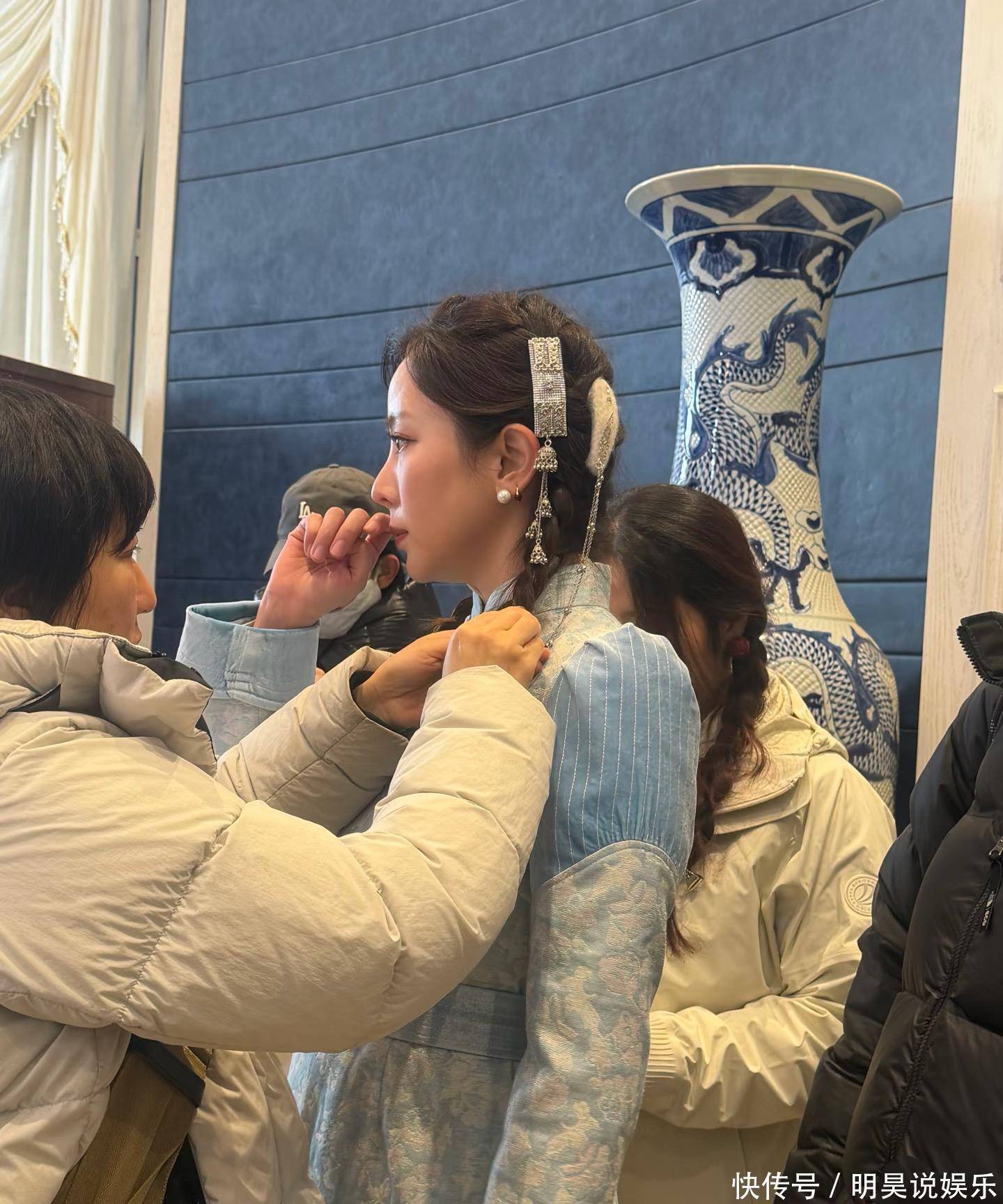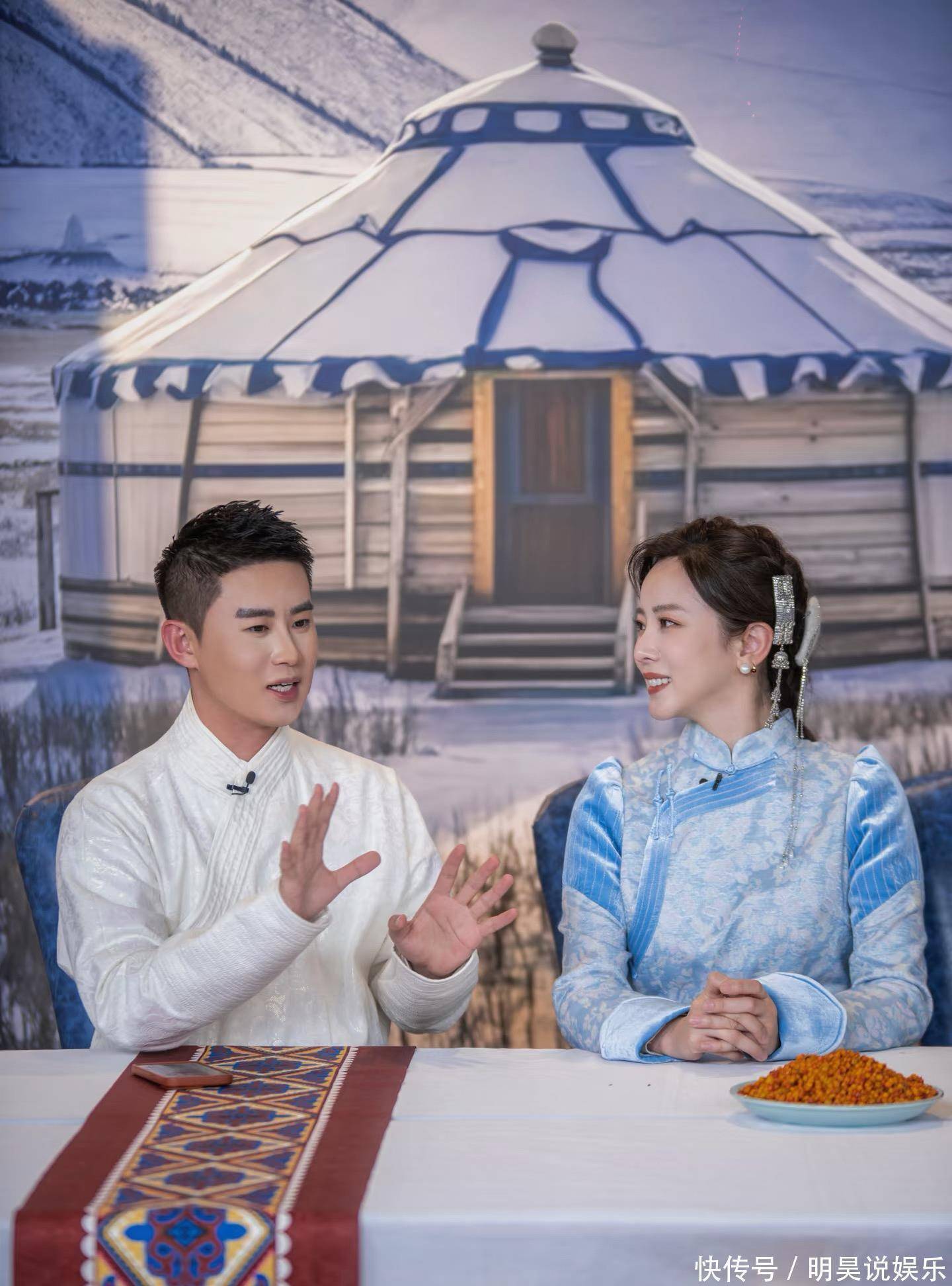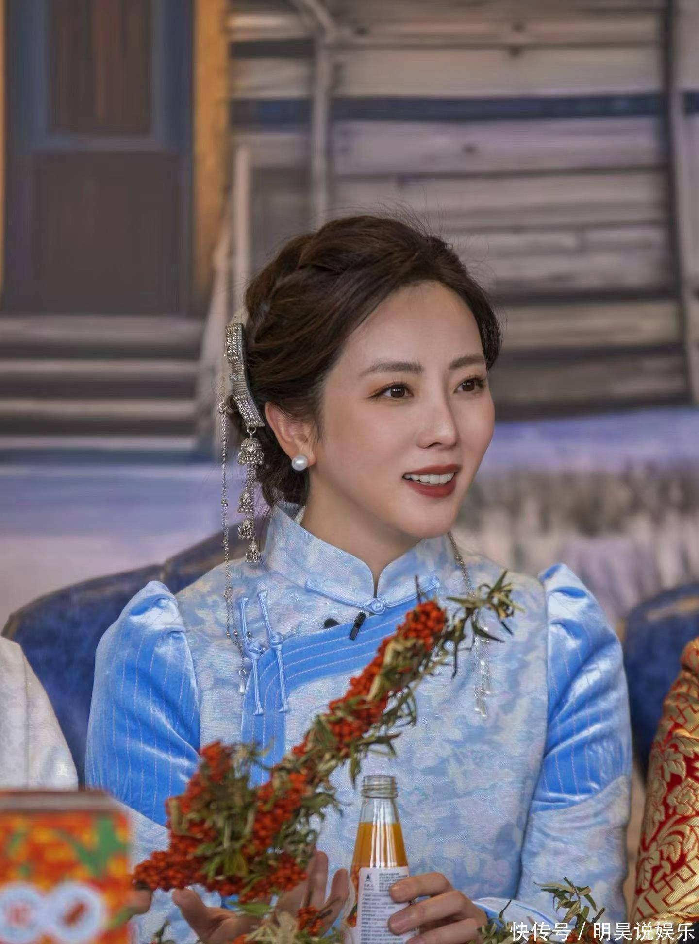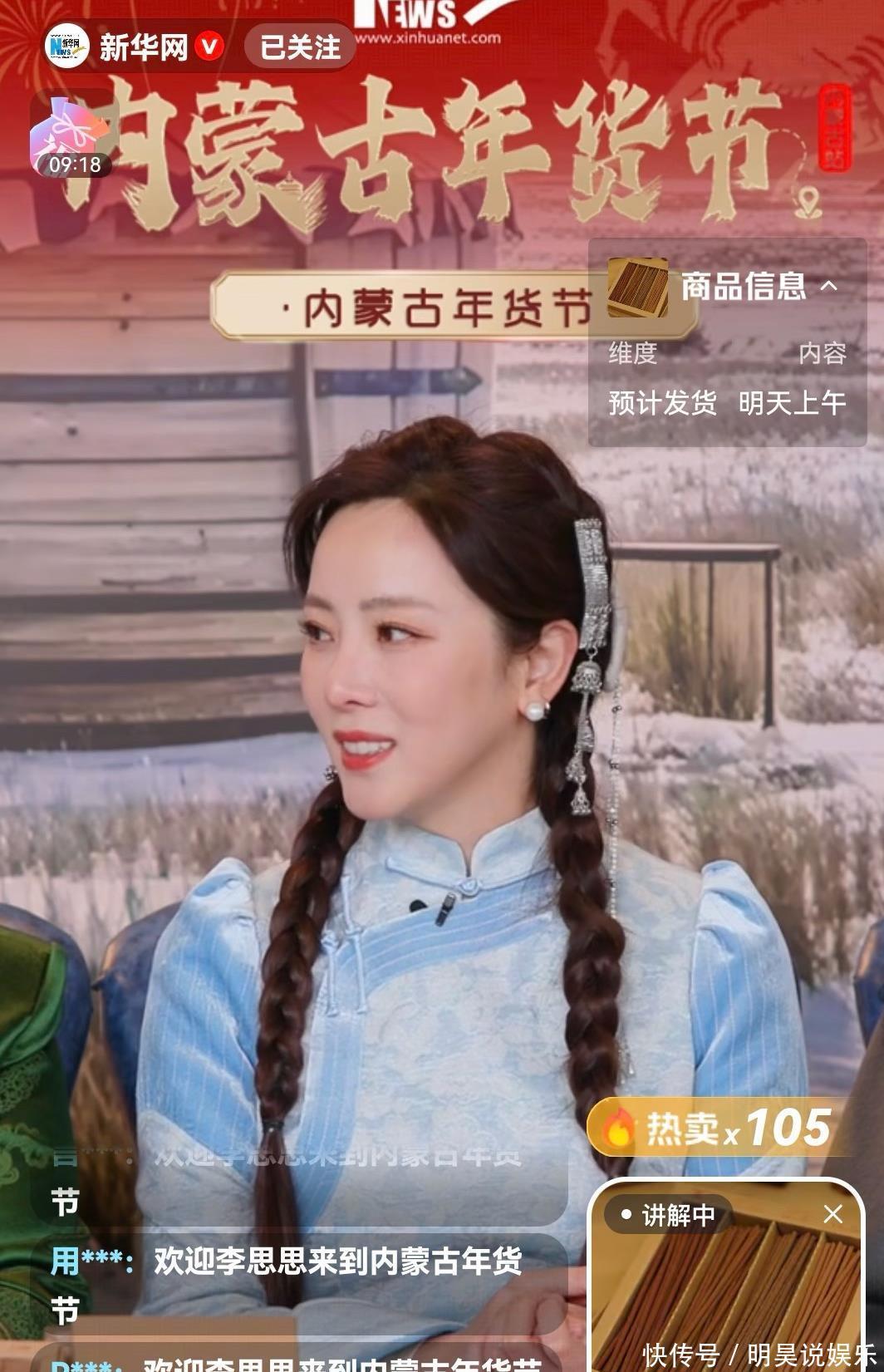 李思思又有新行动!穿浅蓝色蒙古袍直播带货,比做主持人时候还美